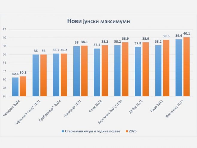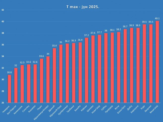 Оборени рекорди за апсолутну максималну температуру у јуну. Ево гдје је у Српској јуче било 40,1 степени Целзијусових (ФОТО)