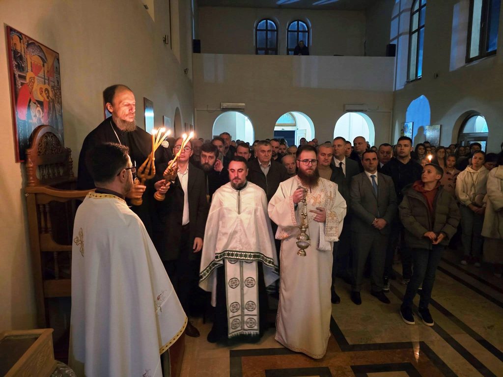 Синоћ, уочи празника Светог Саве, славе града и Храма, служено је свечано вечерње богослужење које је предводио Његово Високопреосвештенство Митрополит Димитрије, уз саслужење свештенства и молитвено учешће бројног вјерног народа.